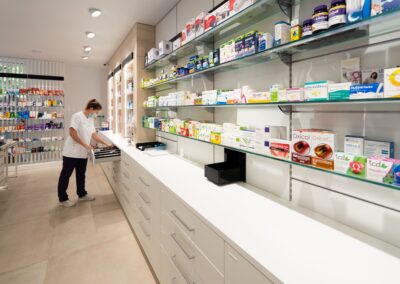 La farmacia es ahora un espacio amplio, con categorias muy diferenciadas, con gran surtido, con implementación de nuevos productos como la ortopedia y que invita al paciente a ver y tocar, las colas han pasado a convertirse en momentos de observación de todos los productos que la oficina de farmacia ofrece a sus clientes