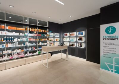 La suerte y la persistencia de Joan, su propietario, hicieron posible la adquisición del local anexo a la farmacia proyectando así un local amplio y nuevo, con una gran fachada, gran almacén, amplia zona de atención al paciente y zonas interiores muy cómodas tanto para el personal como para poder dar servicios al paciente que antes, por espacio, no podían hacerse.